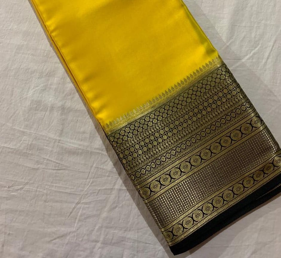 Yellow Semi Mysore Silk Saree with Black Large Border